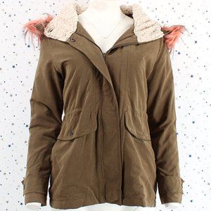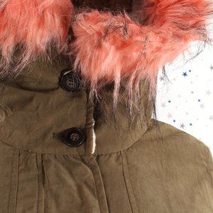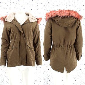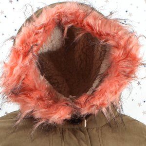Coral Faux Fur Zip Up Hoodie Jacket Detachable Fur