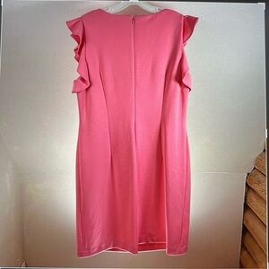This stunning orange dress is designed with a flattering v-neckline and elegant flutter sleeves, perfect for cocktail events or attending weddings. The sheath style offers a sleek silhouette, while the midi length adds a touch of sophistication. Crafted for versatility, this dress is a chic choice for any special occasion.