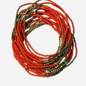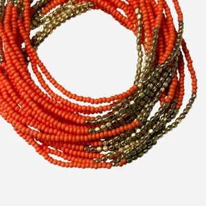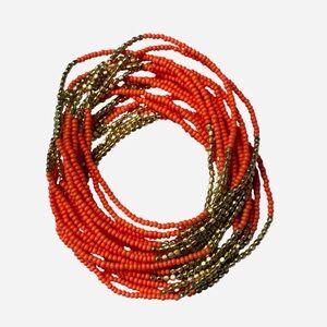 Coral Gold Orange Seed Beaded Bracelets Set of 20 Seeded Tropical