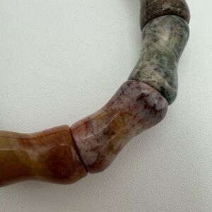 Coral jade bamboo shaped beaded elastic bracelet. Bracelet is approx 6.75”. Beads feature natural coral fossil flower patterns and colors.