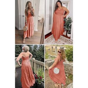 Ladies super cute coral colored lace detail maxi style dress by Dokurito. Excellent condition. Ladies size medium. New with tags.