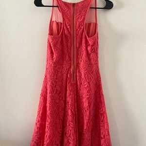 Coral lace dress with mesh neck line