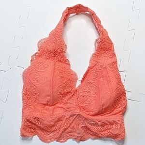SCALLOPED LACE HALTER BRALETTE FULLY LINED WITH BRA PADS (STRETCH LACE)