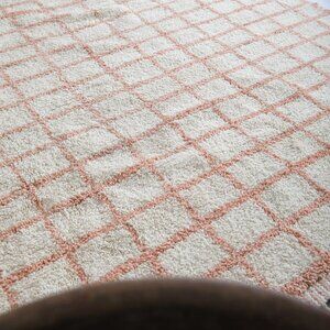 Beautifully handwoven piece that reflects Moroccan craftsmanship. Made from pure natural wool by Bahija Workshop. Offered delivery included.