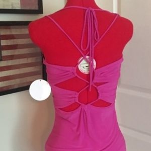 Coral Open Back Crisscross Halter Maxi Tube Dress Symphony Full Length Sexy Sm