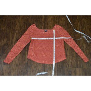 Coral Orange Lace Long Sleeve Top Ransom Girls Sz 14 Y2K Cropped Boho Romantic