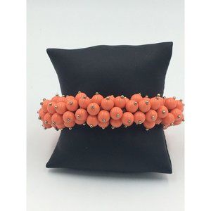 Coral Peach Color Cluster Plastic Charm Beads Stretch Bracelet.