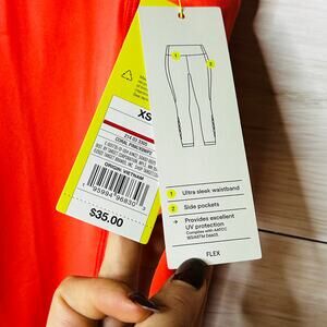 New with tags coral pink (color varies from picture to in person) leggings. Both sides have pockets. Legs have little cutout hole detailing from ankle to calf. Does have hanger imprints from hanging so long. They should wash out.