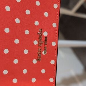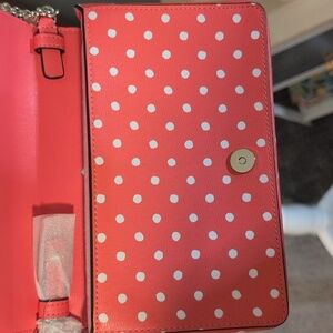 Coral Pink Kate Spade Spencer Polka Dots Crossbody Wallet on Gold Chain NWT