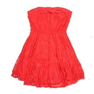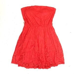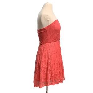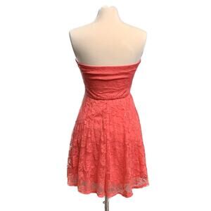 Love Reign hot pink coral mini dress, strapless, lace fit and flare, fully lined, good preowned condition, can be dressed up or worn as a casual summer dress