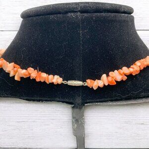 A beautiful coral pink orange shell necklace crafted from asymmetrical shell beads with a barrel screw clasp in back. Excellent preowned condition. See photos for more details.