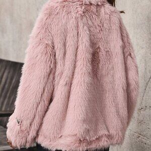 Coral Pink Women's Solid Open Front Fuzzy Coat