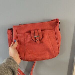 Coral Purse Cross Body Faux Leather Multiple Pockets Medium Sized