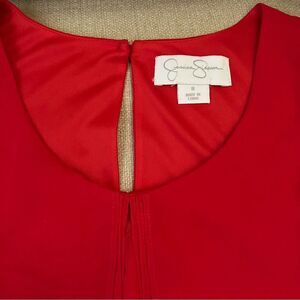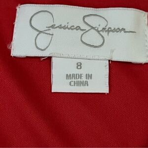 on-trend red dress from Jessica Simpson. Stunning shift dress boasts split tiered layers at front for a feminine touch, this piece is best played with stilettos and a slim neckpiece. This regular-fit dress is made from polyester spandex fabric.