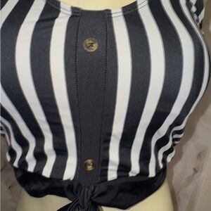 Coral Reef Traveler Tankini Top Black/White Stripe Faux Buttons, Tie Front M