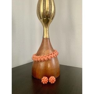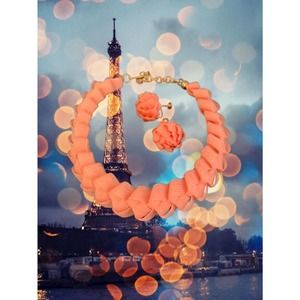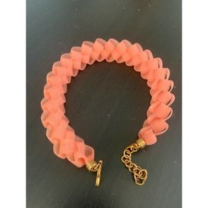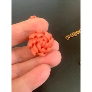 1940s Ribbon Braid necklace earrings set ... coral color, screw back earrings. Necklace has metal J hook closure.