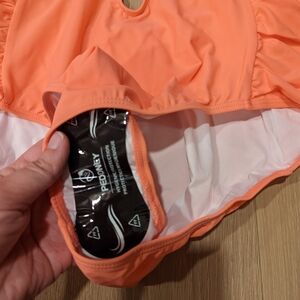 Brighten up swim time with this adorable coral ruffled swimsuit. Perfect for fun in the sun.