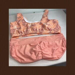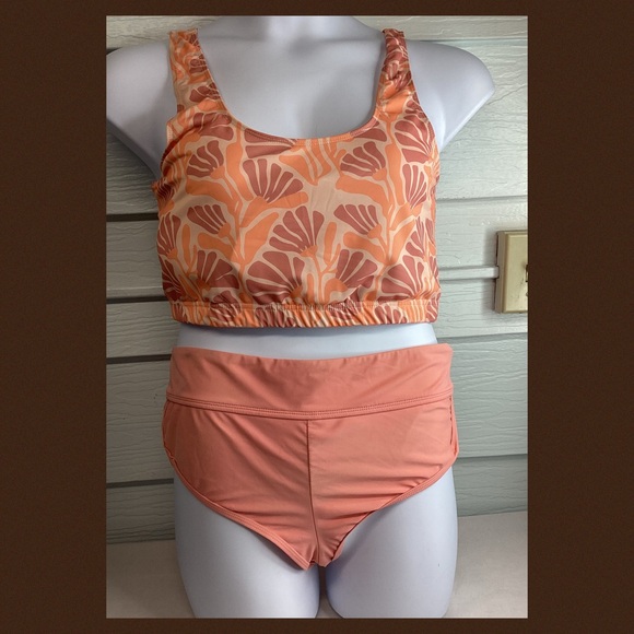 Stylish two-piece swim set. Features coral shell pattern top. Solid coral high-waisted bottoms. Perfect for beach days. True head Turner. This swimsuit is new. It’s great for the beach the pool. It’s a true head Turner on vacation. these swimsuits are very flattering .You will look gorgeous pool parties. You’ll be the hit the colors pop. This is the sales price at this time.