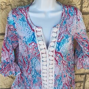 Coral Shells Tunic Beach Vacation Blouse comfy Size Med
