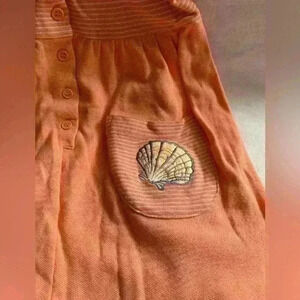 Coral Short Sleeve Dress, 3/4 Front Button, Embroidered Shells on Front Pockets