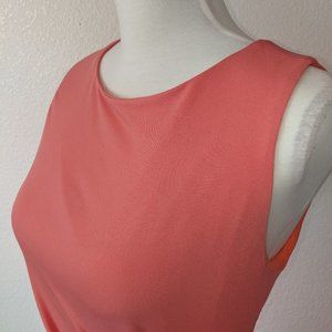 Super stretchy sleeveless coral side ruched dress by Carmen Marc Valvo.