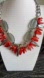 Coral and albacore spikes, silver chain and crystals. Handmade statement necklace, brand new.