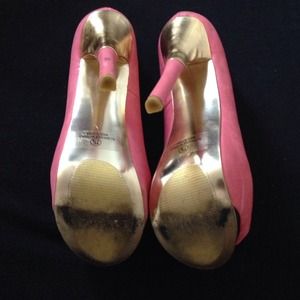 Coral and gold peep-toe pumps!