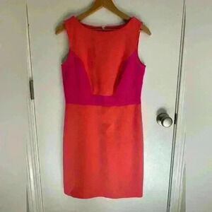 Coral and pink Ann Taylor LOFT dress fitted and stretchy fabric size 4