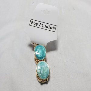 Coral bay gold with Aqua enameled stretch bracelet 2.5 inch diameter 6 stones on bracelet