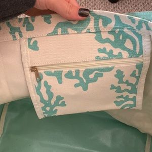 The perfect beach bag! Zipper pocket inside; lined on the bottom to protect from sand!