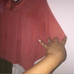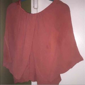 Cute coral blouse. Good condition looks the way it's shown in pictures. Not many flaws, pictures show shadows in the shirt that look like stains but you cannot see them honestly. Will wash shirt again just to make sure.