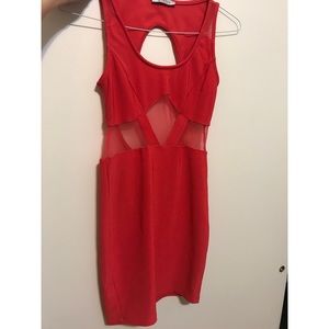 Gorgeous dress. Worn only a handful of times. Makes your figure look really good! Fits 0-4. There is a tiny hole (see pic) in the mesh but can be repaired