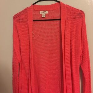 Coral/ pink cardigan! Worn once or twice. Still in new condition!! Light weight so it's great for spring! (White shirt not included)