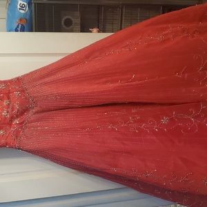 Coral enbroidered ballgown size 8