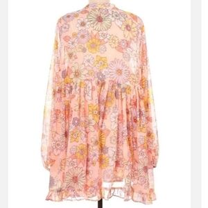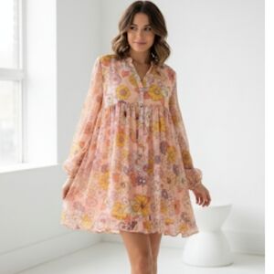 Elevate your wardrobe with this gorgeous By Together dress, brand new with tags! A perfect blend of comfort and style, this sheer, unlined dress features a vibrant retro-inspired floral print in pink, yellow, and orange hues. Its relaxed silhouette and lightweight fabric make it ideal for layering in any season.