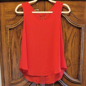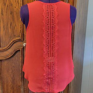 Coral lined sleeveless dressy tank blouse with lace in back. Sz: M