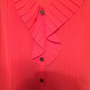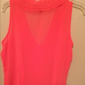 Sleeveless coral top made of beautiful sheer material . ONLY WORE ONCE!!! Like brand new !! Has ruffle design and buttons in the front . Perfect top for summer ! 🌺🌺🌺