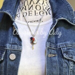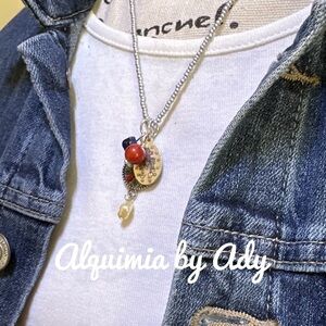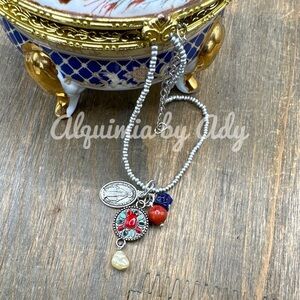 Coral silver Virgin Mary medal lapis pearl charms bohemian beaded necklace