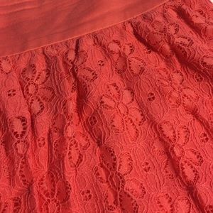 Coral colored skirt with flower designed lace. Only worn once and in perfect condition. The top is elastic from the back