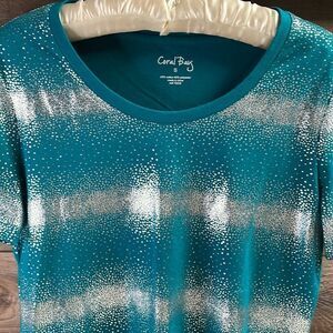 Coral Bay Teal and Metallic Silver Top, Size Small