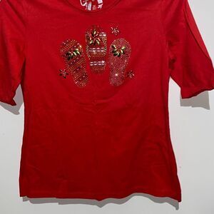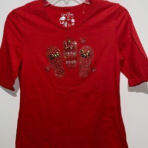 Coral Bay Women's Red Embellished Flip Flops Crew Neck Short Sleeve T-Shirt Size PS