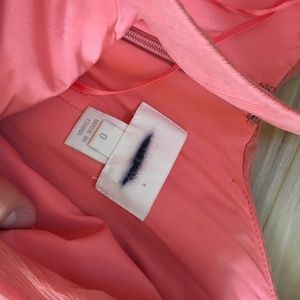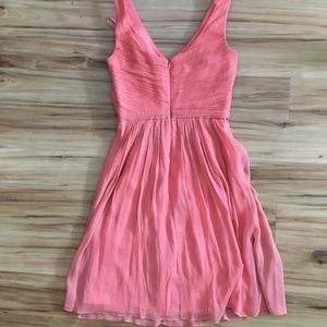 In good used condition, no blemishes. I bought this on Poshmark from a former bridesmaid to wear as a bridesmaid myself! So I'm guessing this has only been worn twice. 12 in waist that does not give. 22 in from waist to hem, 36 from shoulder to hem.