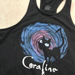 Coraline Women’s Tank Top Medium Black Long Flowy Cat Graphic Print Hot Topic