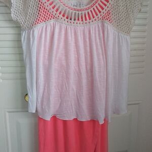 Coral/pink dress 2 piece set comes w knit sweater to throw over when chilly
