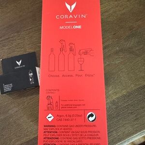 Coravin Model One Wine system features a soft-touch grip and premium Coravin capsules. Lets you pour wine effortlessly without removing the cork so you can enjoy the rest of the bottle another day.