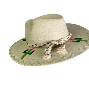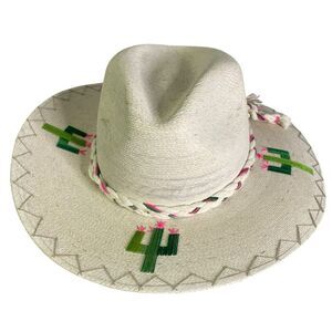 White Palm Straw Hat with Cactus around the brim (Green/Brown) size large. Large: 22.5"-24.25"