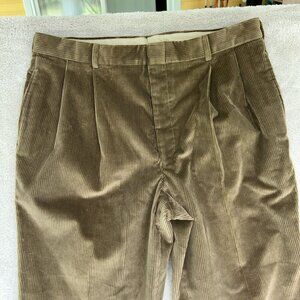 Corbin OTC Golden Brown Corduroy Pants Men Size 38 Unhemmed Pleated Front 48x37