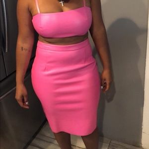 Pink leather Crop top and midi skirt. This set has never been worn. Tags not included