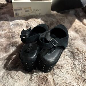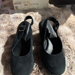 Cordani 2 /1/2inch wedges with sling back straps black suede. Barely wore beautiful shoe!!