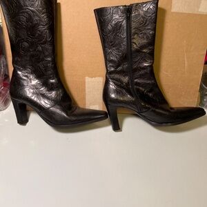 Cordani Boots made in Italy. They are black with a 3" heel. They are a size 38 . I am a 7.5 and they fit me perfectly. Just freshened up at my cobblers. Small rip in the interior lining not the leather